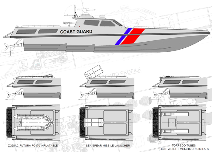 The 15m Interdiction, Surveillance and Patrol vessel is a long-range patrol craft that offers superior sea-keeping ability and speed. The deep-vee hull form, designed by UK military specialists Vectis, incorporates race-derived hull steps that minimise drag and ensure ultra-low resistance through the water. The craft delivers superb all-weather performance, whilst advanced shock mitigation technology allows the crew to perform their duties effectively, even in the most testing environments.